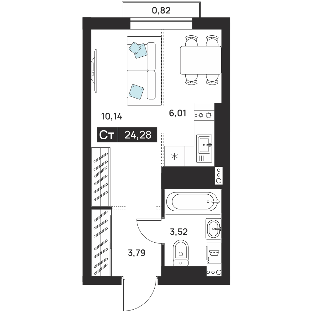 Студия 24.28 м