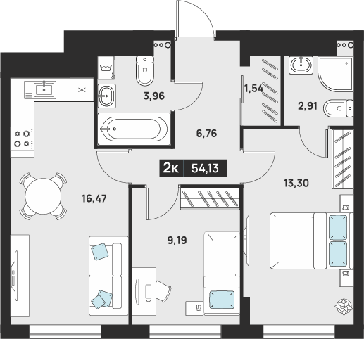 2-комнатная 51.62 м2