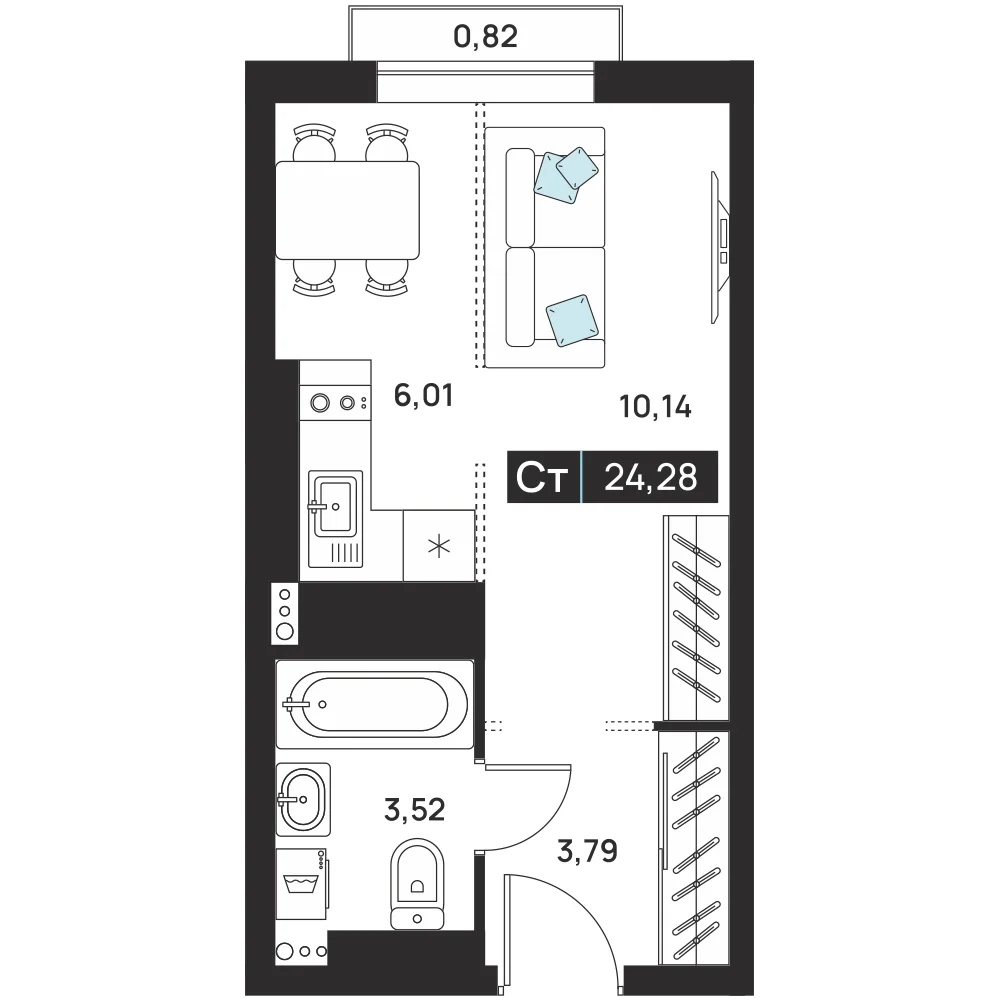 Студия 24.28 м