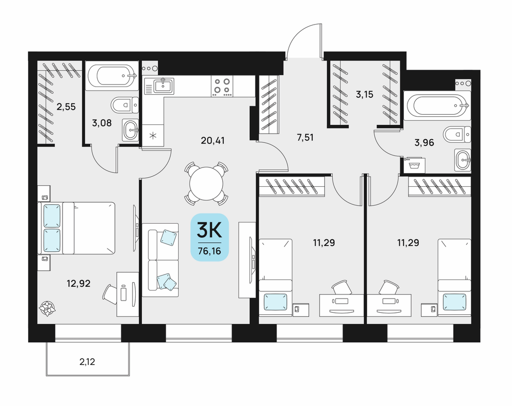 1-я очередь, Секция 2, Этаж 12