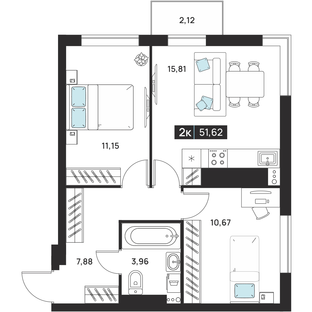 2-комнатная 49.5 м