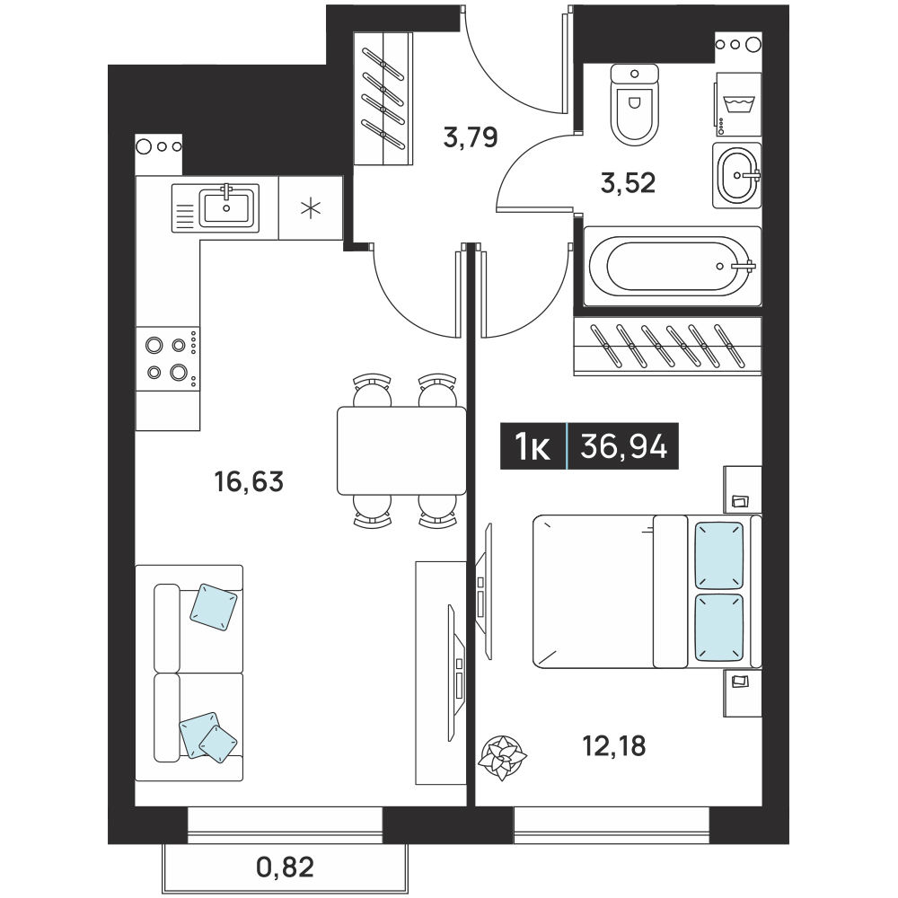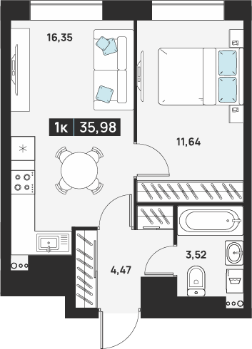 1-комнатная 37.84 м