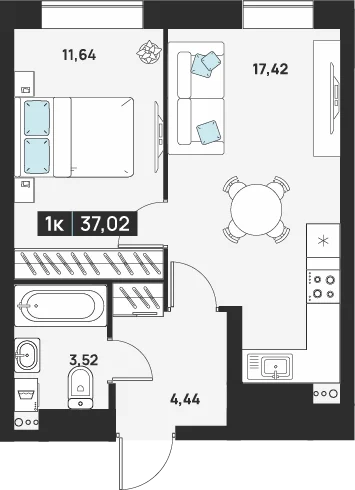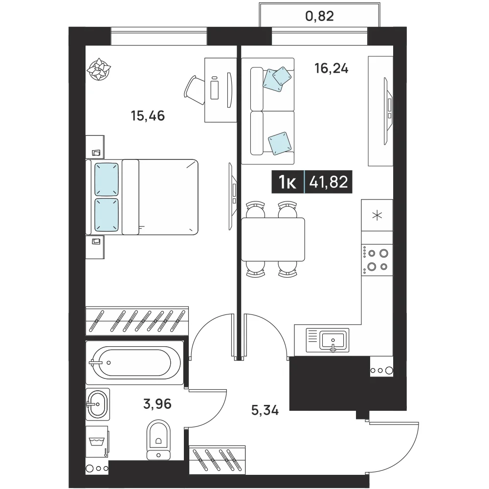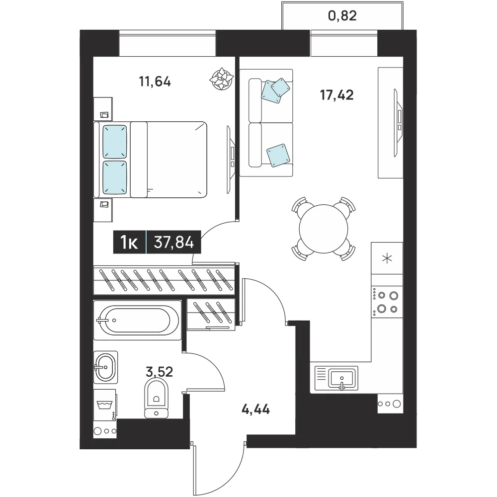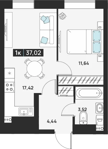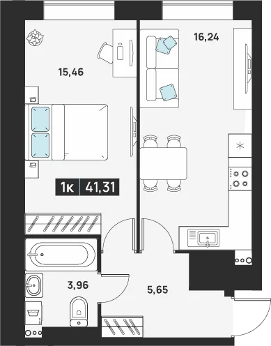 1-комнатная 41.82 м