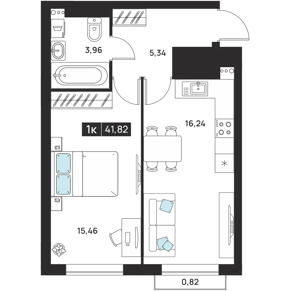 1-комнатная 41.82 м