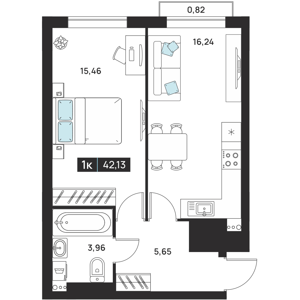 1-комнатная 41.31 м