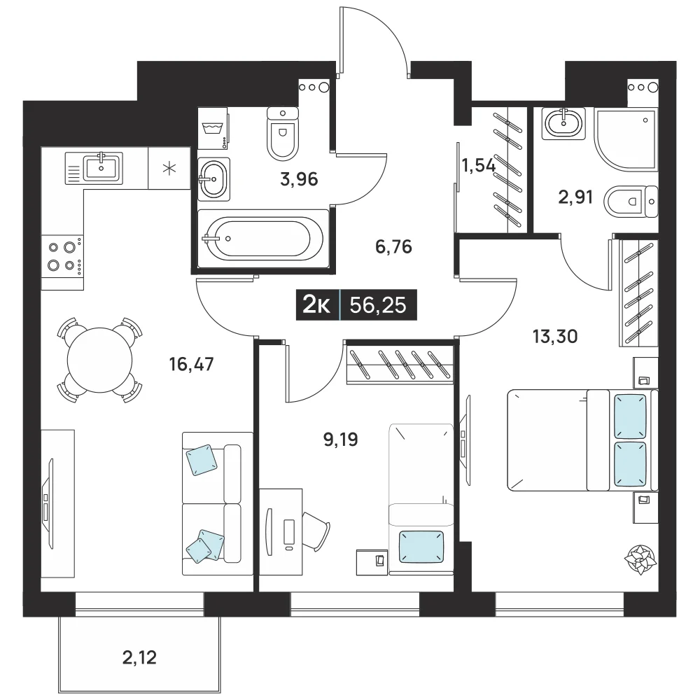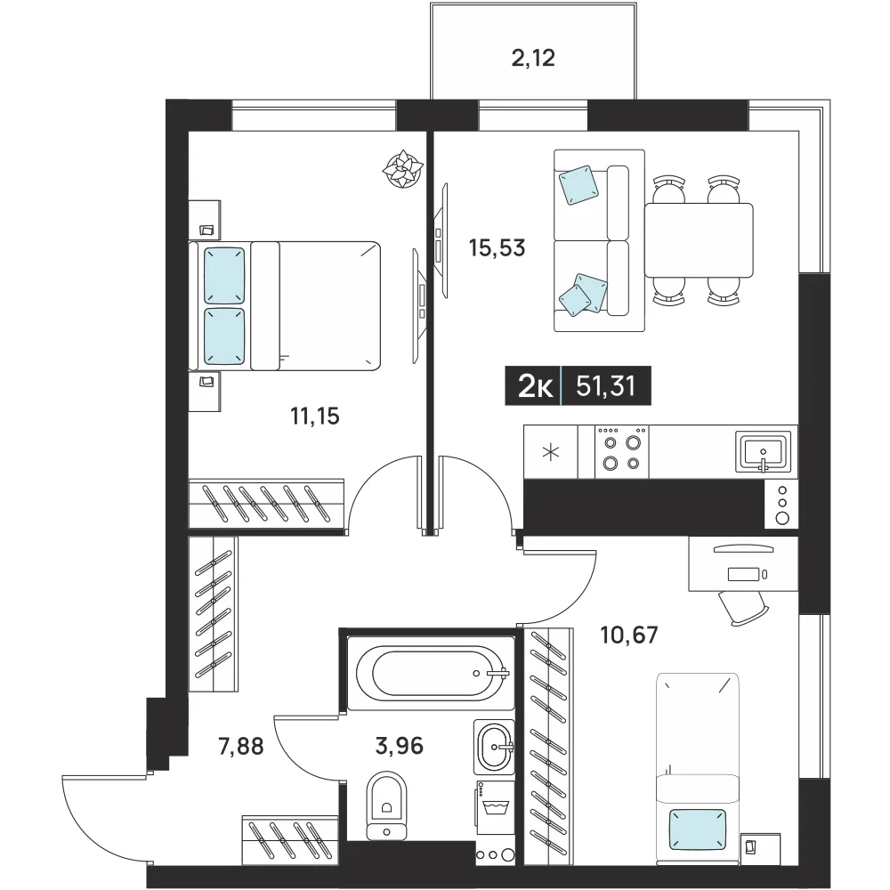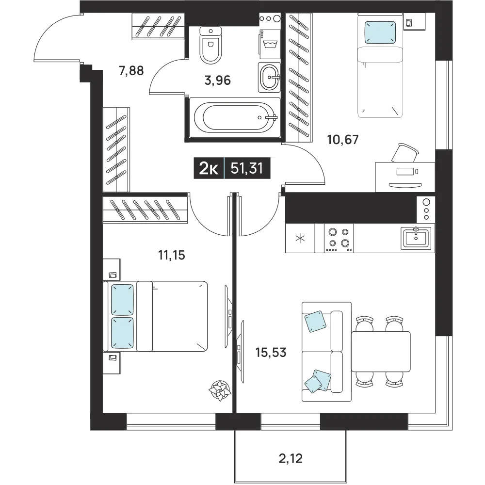 2-комнатная 51.31 м