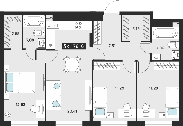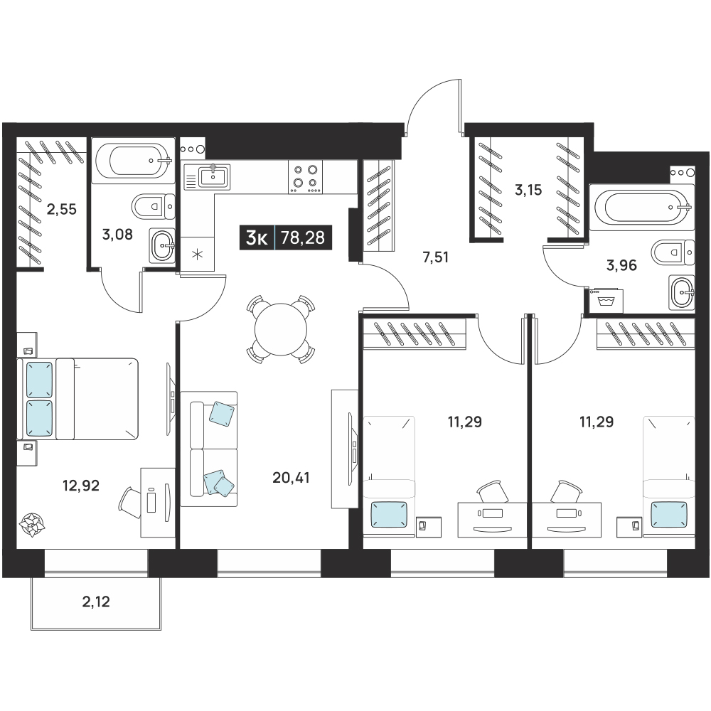 3-комнатная 78.28 м